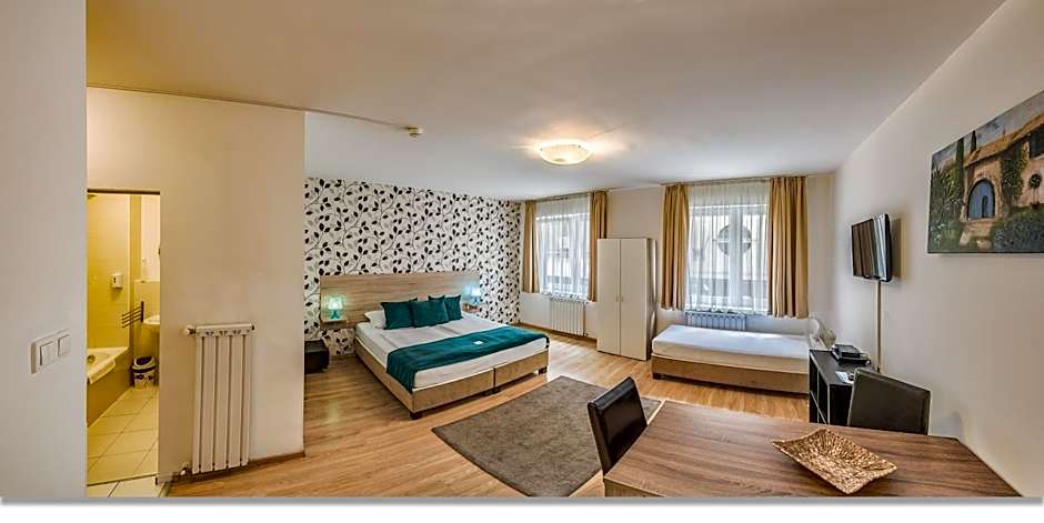 This stylish and modern studio comes with a seating area and a well-equipped kitchenette, and facilities include a flat-screen satellite TV and a DVD player. Some units feature a balcony with garden views.
